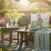 This darling Easter accent pillow features a sweet rabbit tucked into a patch of fresh cabbages—an irresistibly charming touch for welcoming spring indoors or out.