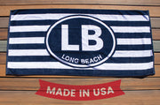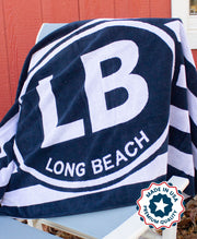 Long Beach towel in navy blue stripe.