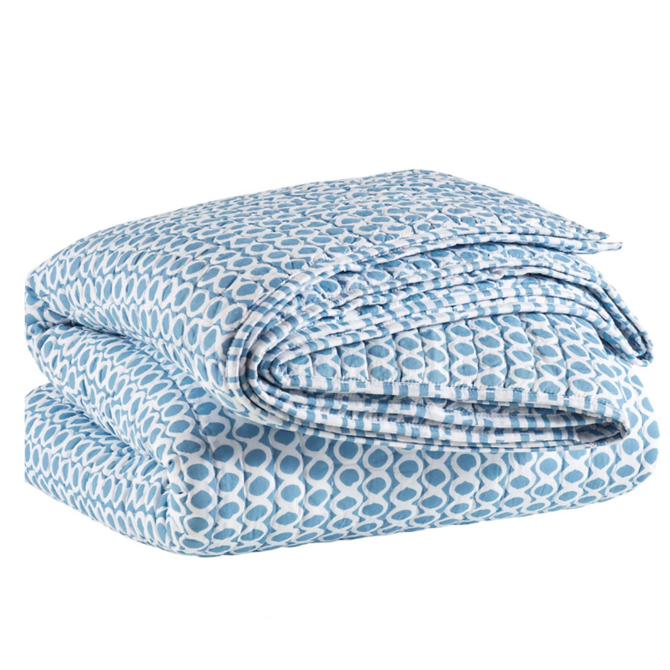 Coastal blues with fun modern geometric pattern, this quilt is the perfect addition to any coastal inspired bedrooms. Pine Cone Hill Bedding made by Annie Selke.
