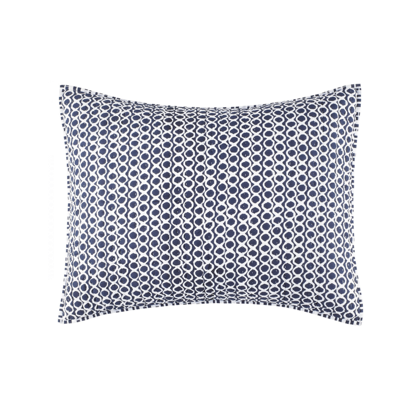 Coastal blues with fun modern geometric pattern, this sham is the perfect addition to any coastal inspired bedrooms. Pine Cone Hill Bedding made by Annie Selke.