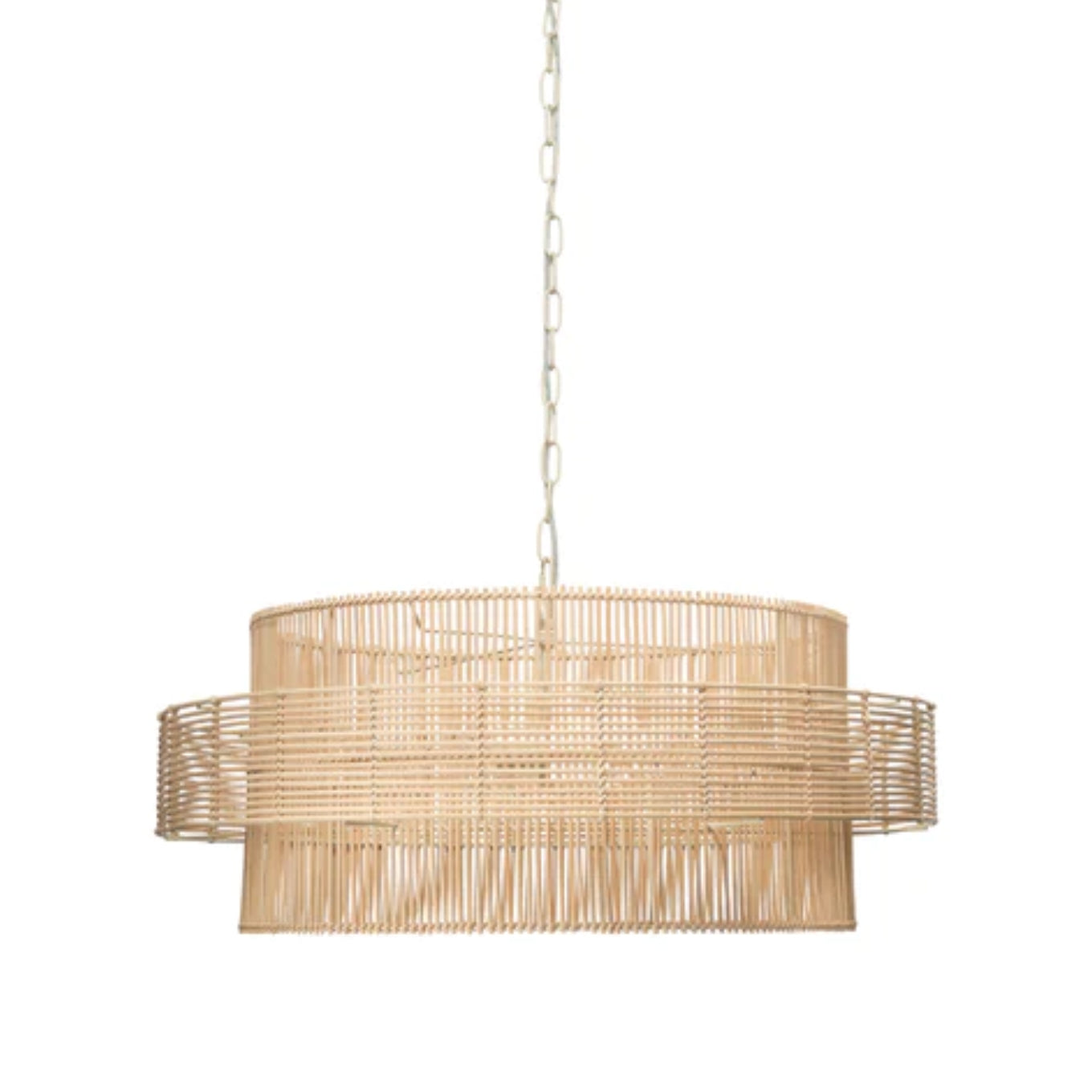 An urbanized take on tropical, this striking rattan pendant is sized to make a statement at a full two and a half feet in diameter. Beautifully handcrafted from strips of natural rattan, it is just the breath of fresh ocean air your décor desires.