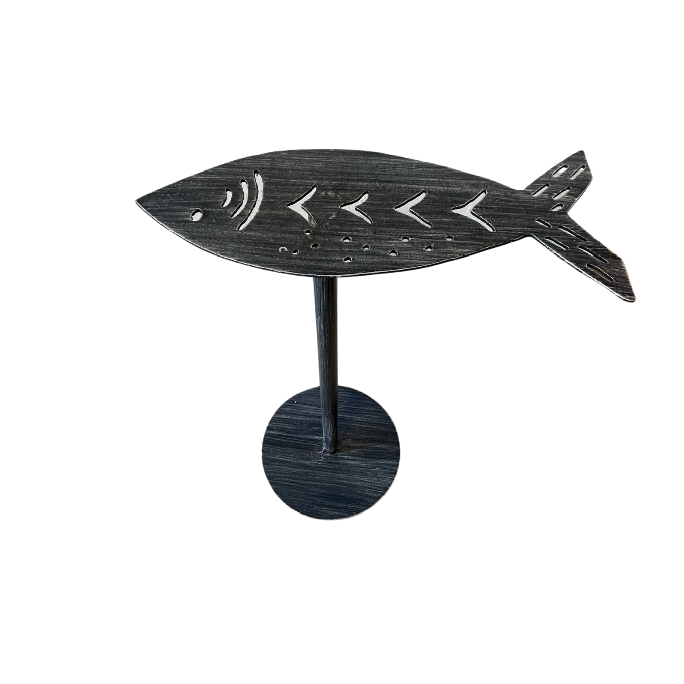 Add a touch of coastal whimsy to your home with our Metal Fish Drink Table. Handcrafted in the USA, this unique piece brings the charm of the coast indoors—perfect for lake cottages or beach retreats alike. Sturdy, artful, and just the right size for your favorite drink or book by the chair.