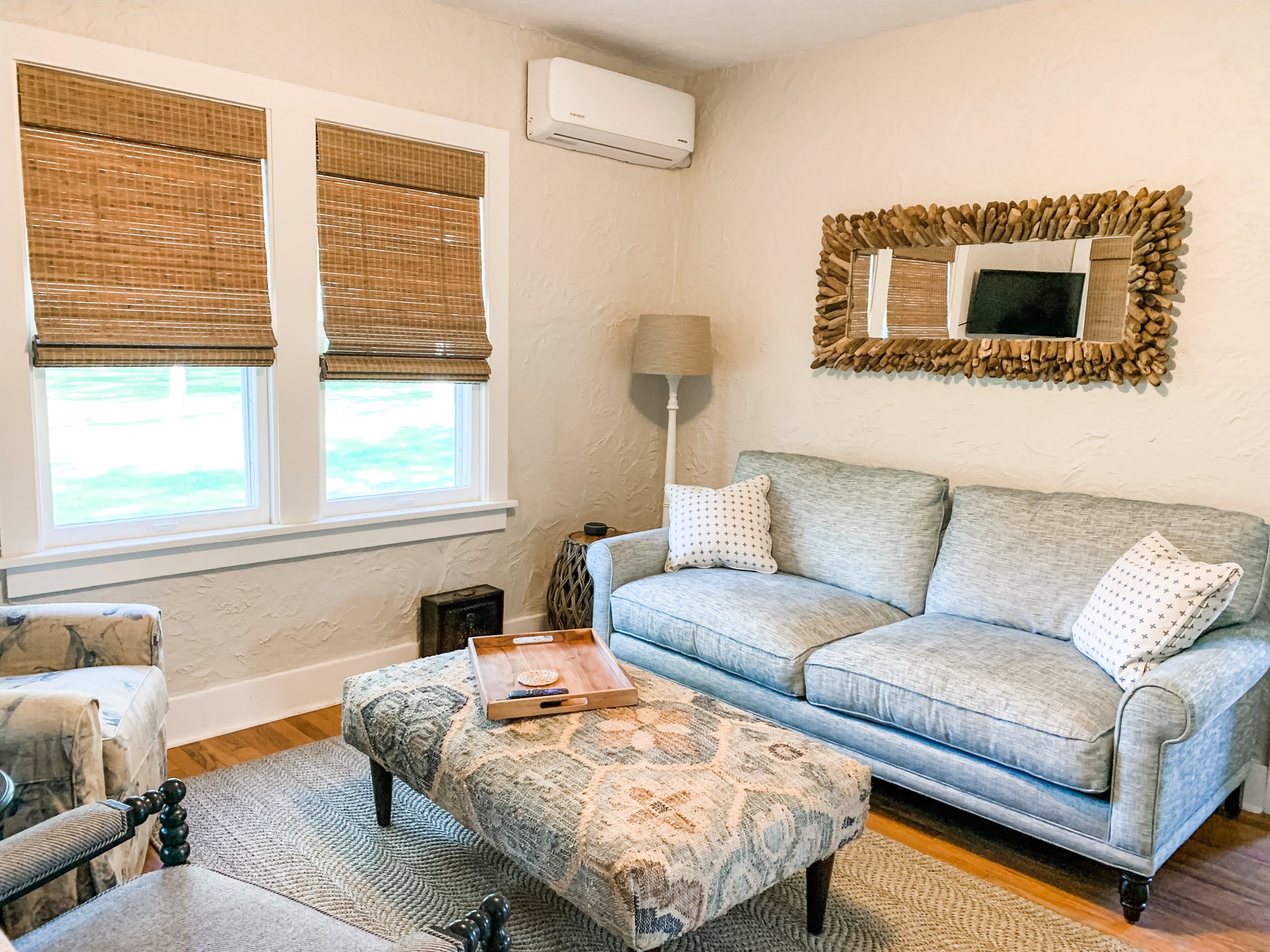 It’s perfect in front of a sofa, at the end of a bed, or as a versatile accent in an entryway or living room. Use it as extra seating, a footrest, or a spot to stage a tray—an elegant, hardworking piece for lake and beach homes alike.