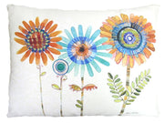 This accent pillow features a colorful funky daisy graphic and can be enjoyed indoors or out. Constructed of 100% polyester, but feels like natural cotton. Use Indoors or Outdoors, weather resistant, fade resistant and mildew resistant. Removable pillow case with zipper.