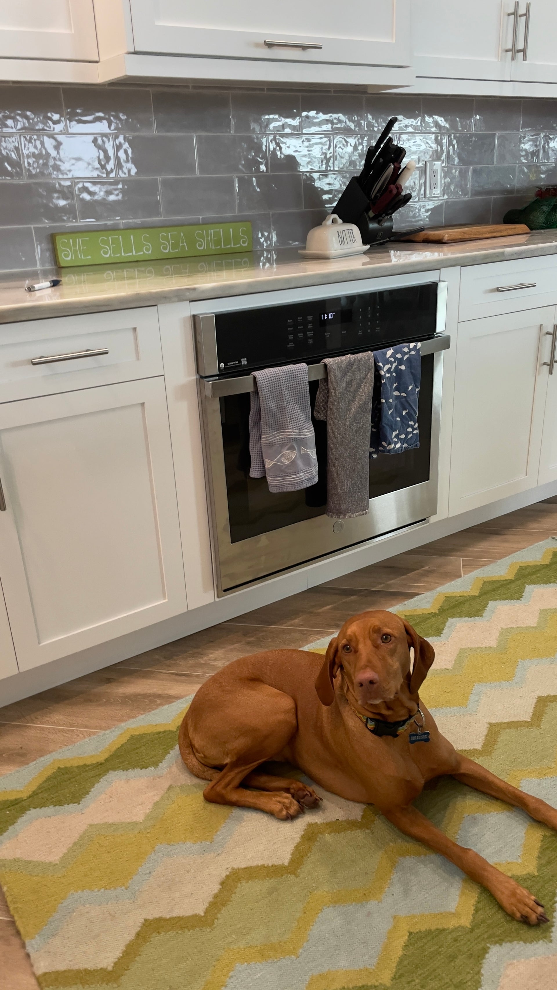 Bring effortless coastal charm to your space with this geometric rik-rak patterned rug, woven in soothing green hues that echo lakefront pines and breezy beachside grasses. Crafted from durable recycled P.E.T. performance threads, it offers the cozy feel of cotton with the strength to handle sandy feet, busy days, and life by the water.