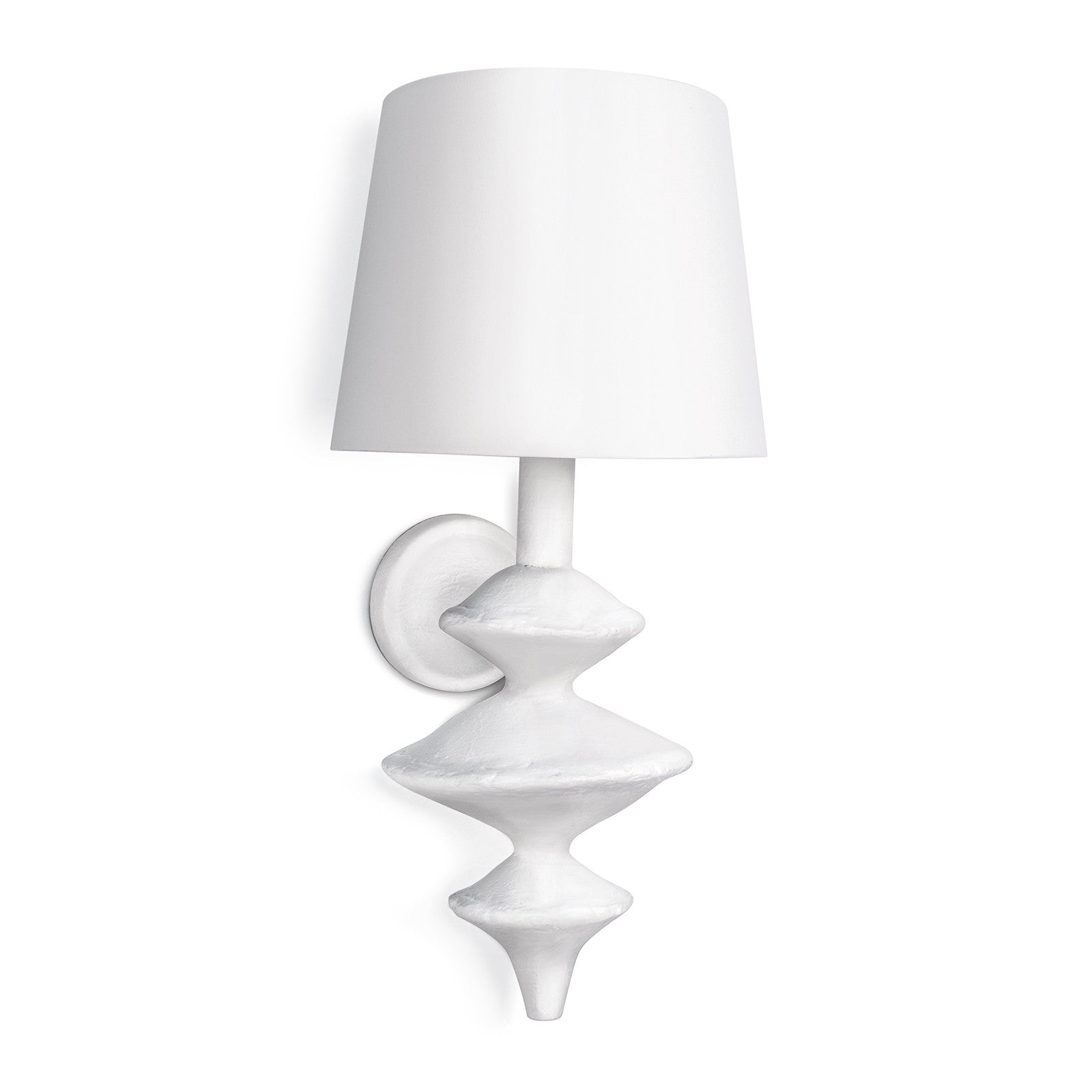 Inspired by a paper maché sculpture, this versatile sconce is at home in a variety of spaces. Complex curves, paired with a matte white finish gives this table lamp a unique appearance. Slight imperfections were left in, adding beauty and originality.
