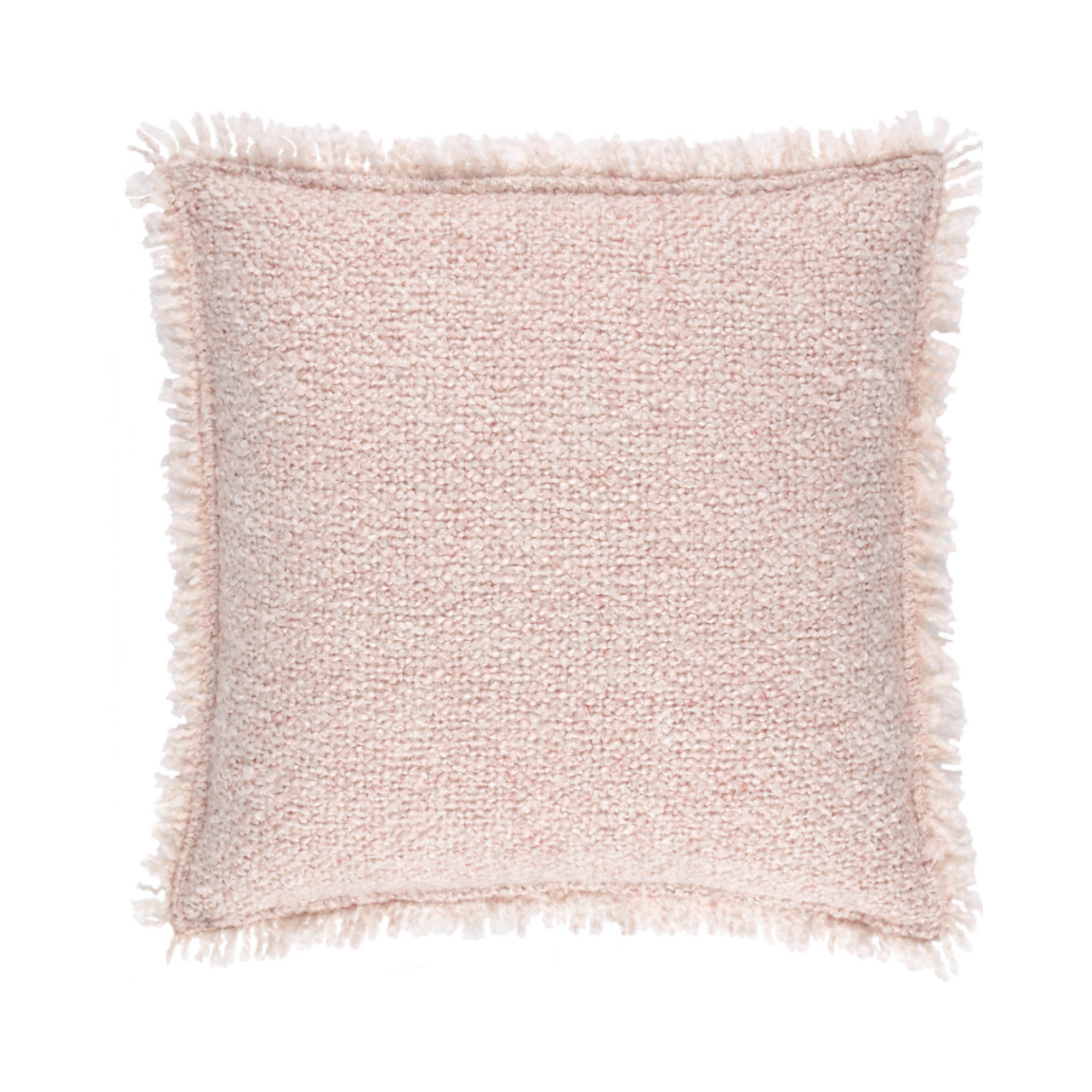 The rugged texture of this chunky bouclé marled weave pillow belies a surprisingly soft and snuggly feel. Woven from performance yarns that shrug off moisture and stand up to the sun. Hand-finished with a knotted self-fringe on all sides.